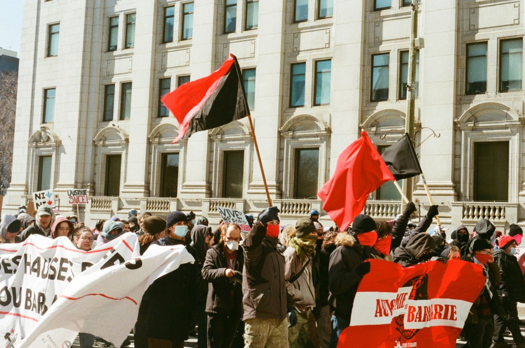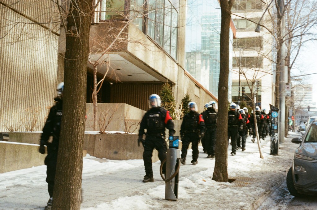 Les actions ont commencé le lundi 23 mars avec l’occupation du Cégep Saint-Laurent par les étudiant.e.s jusqu’à ce qu’elles et ils soient expulsé.e.s par le SPVM.