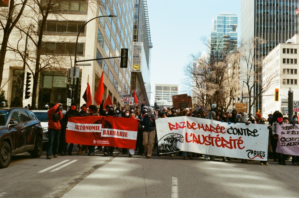 Environ 65 000 étudiant·es de différents cégeps et universités ont été en grève, répondant ainsi à l’appel de la Coalition de résistance pour l’unité étudiante (CRUES). La « semaine de grève et d’actions contre l’austérité » avait pour but de revendiquer des réinvestissements massifs dans le réseau d’éducation post-secondaire, une réforme du système d’aide financière aux études et la rémunération des stages.