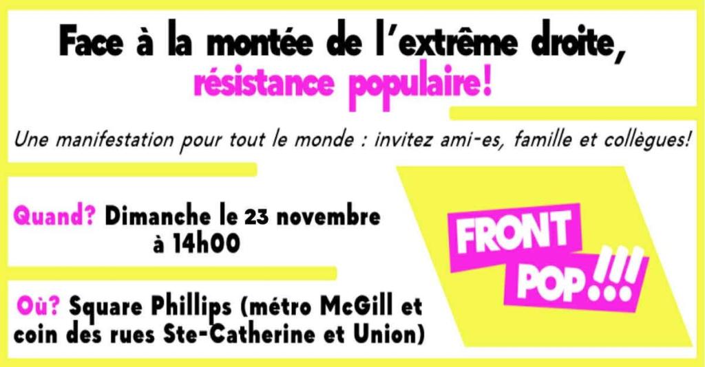 Rendez-vous le 7 novembre à 15 h à la Place Émilie-Gamelin à Montréal pour manifester et construire ensemble un front commun contre l’austérité et pour une éducation libre, accessible et de qualité.